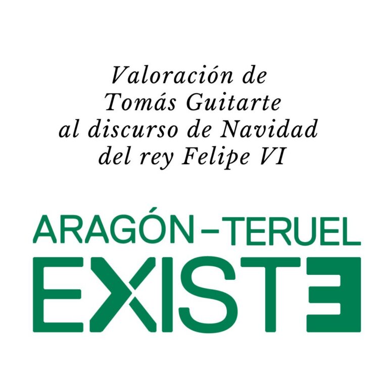 Tras el tradicional discurso de Navidad del rey Felipe VI, el diputado y candidato de Teruel Existe a las próximas elecciones en Aragón, Tomás Guitarte, se ha referido a las palabras del monarca quien ha definido a la España de los últimos 50 años como “un proyecto compartido” indicando que “un proyecto compartido de verdad no puede dejar a ningún territorio ni a ninguna persona fuera y hay una España que se ha visto abandonada por todos los gobiernos durante este medio siglo”. Por ello, ha reivindicado que “son imprescindibles políticas de Estado que acaben con la marginación y la falta de oportunidades para el desarrollo que sufren esos territorios que han sido olvidados y sacrificados, como Teruel y el conjunto de Aragón”.